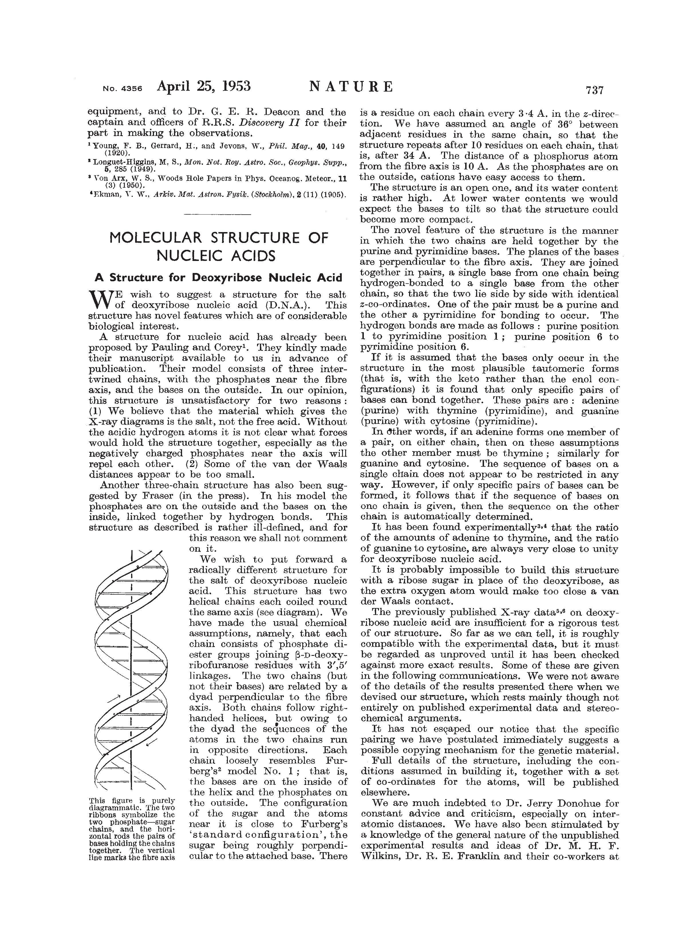 A pesar del trabajo de Miescher, James Watson y Francis Crick son a quienes se relaciona con el hallazgo del ADN; porque, gracias a sus observaciones con rayos X, propusieron el modelo de doble hélice en un artículo publicado en la revista Nature un 25 de abril 1953.