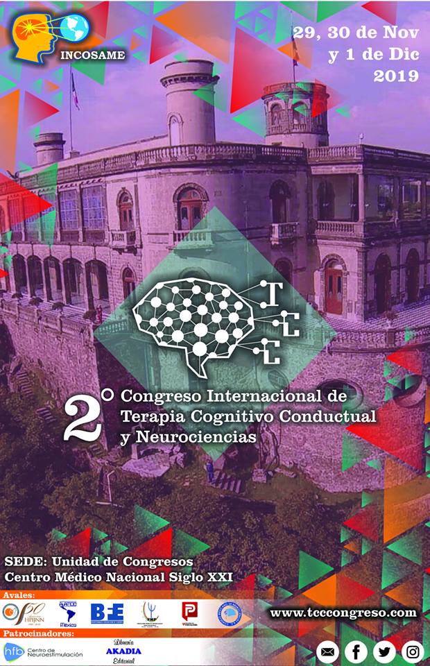 Ya puedes reservar tu lugar para el 2° Congreso internacional de terapia cognitivo conductual y neurociencias, que se llevará a cabo del 29 de noviembre al 1 de diciembre de este año en el Centro Médico Nacional Siglo XXI.