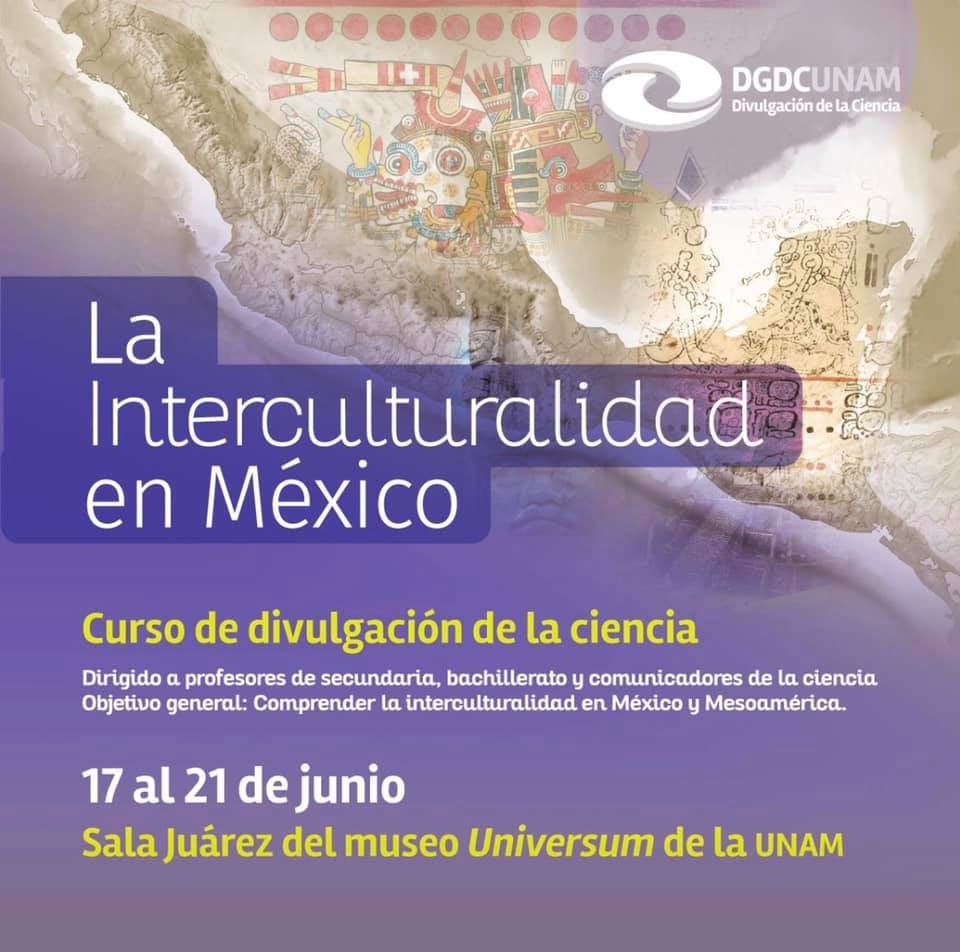 La Dirección General de Divulgación de la Ciencia, UNAM, ha abierto la convocatoria para el curso La interculturalidad en México, que será del 17 al 21 de junio.