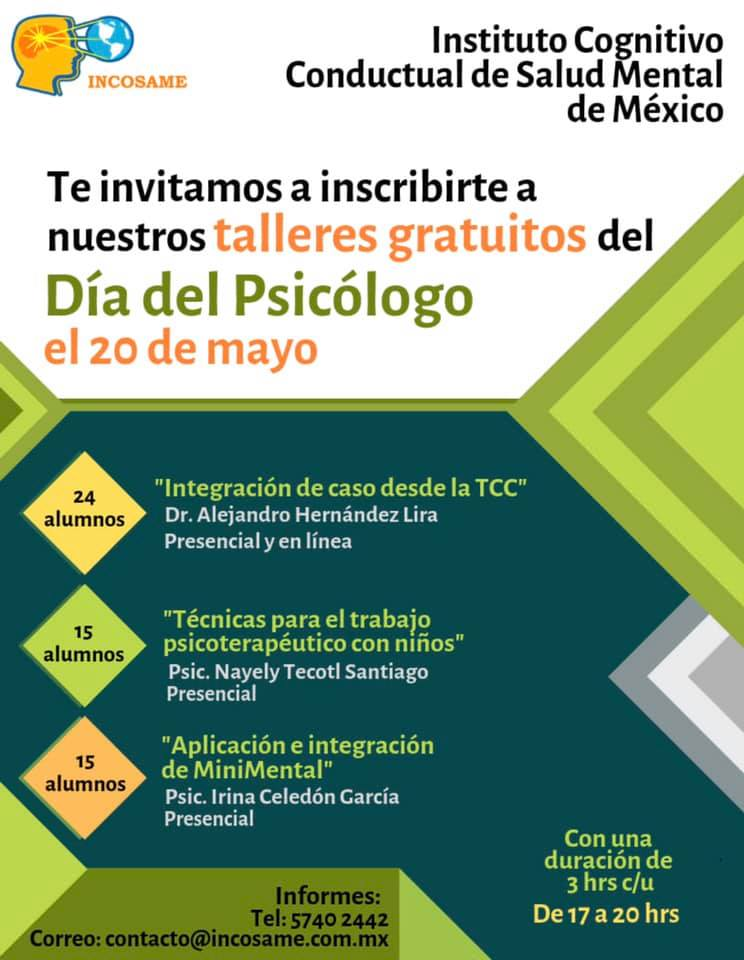 El Instituto cognitivo conductual de salud mental de México invita a festejar el Día del psicólogo el próximo 20 de mayo.