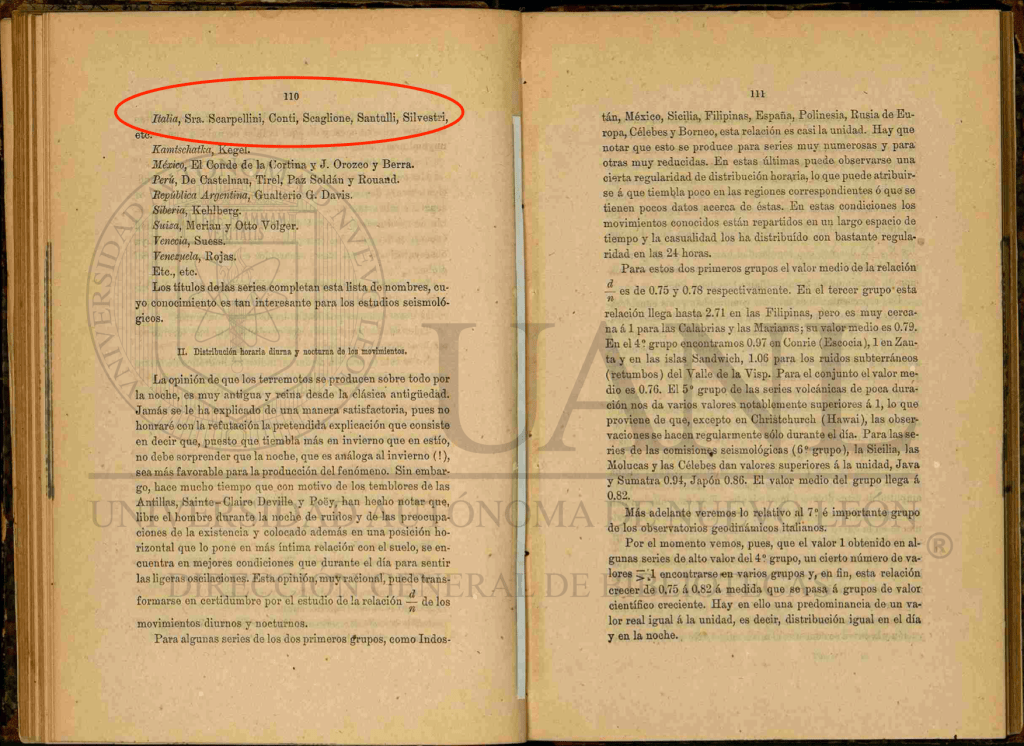 Gabriela Berti Logan explica que la astrónoma italiana consiguió un lugar en la academia de Georgofili de Florencia y en otras importantes academias extranjeras como la Sociedad Imperial de Naturalistas de Moscú gracias a sus “investigaciones y publicaciones extensas en sismología, meteorología y astronomía”.