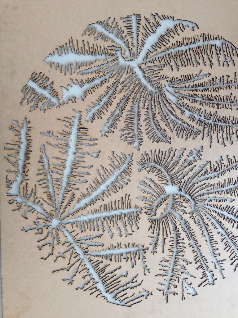 De este último proceso se desprende “Genealogía de una lágrima” (4), proyecto en el que a partir de microfotografías de diferentes momentos en el proceso de secado de sus lágrimas obtuvo dibujos.