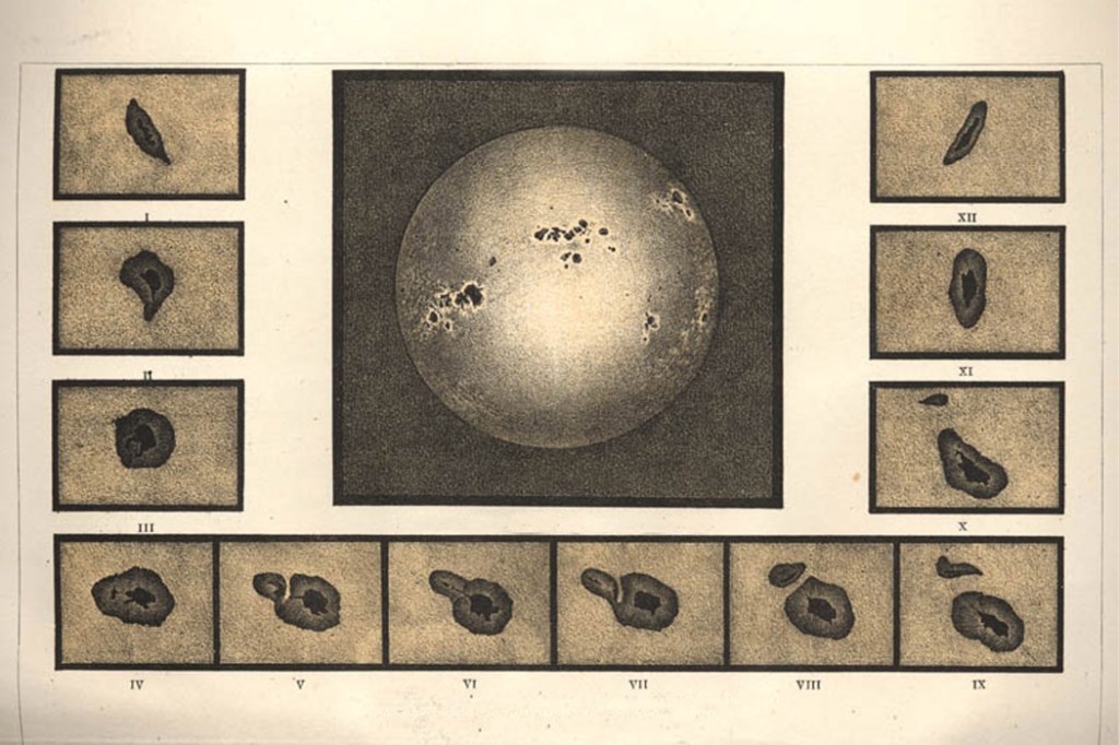En este proceso fue elemental la confrontación de Galileo Galilei a los jesuitas, quienes no podían pensar en un Sol imperfecto. Aunque antes del astrónomo italiano, sus colegas chinos, en el año 28 antes de Cristo, habían señalado la existencia de manchas solares, algo que indicaría nuevamente Kepler en 1607. En 1826, Samuel Schwabe refirió la característica cíclica de las manchas y tiempo después, Alexander von Humboldt rescató sus datos e incluyó nuevos registros. Estas labores permitieron que en 1852 fuese identificado el ciclo de 11 años del Sol . El trabajo persistente de la japonesa Hisako Koyama se suma a la historia de las manchas solares con el registro más prolífico y extenso jamás hecho, en el cual destaca la mancha solar más grande del siglo XXI y la descripción de un destello de luz blanca en el Sol.